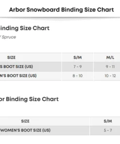 Bow-Strap Adjuster – Arbor’s patented “Bow-Strap” adjuster and ladder strap swings out of the way quickly and easily, making binding entry a simple, user-friendly experience. The pre-curved strap steers clear of your boot while maintaining form and durability in even the coldest conditions.